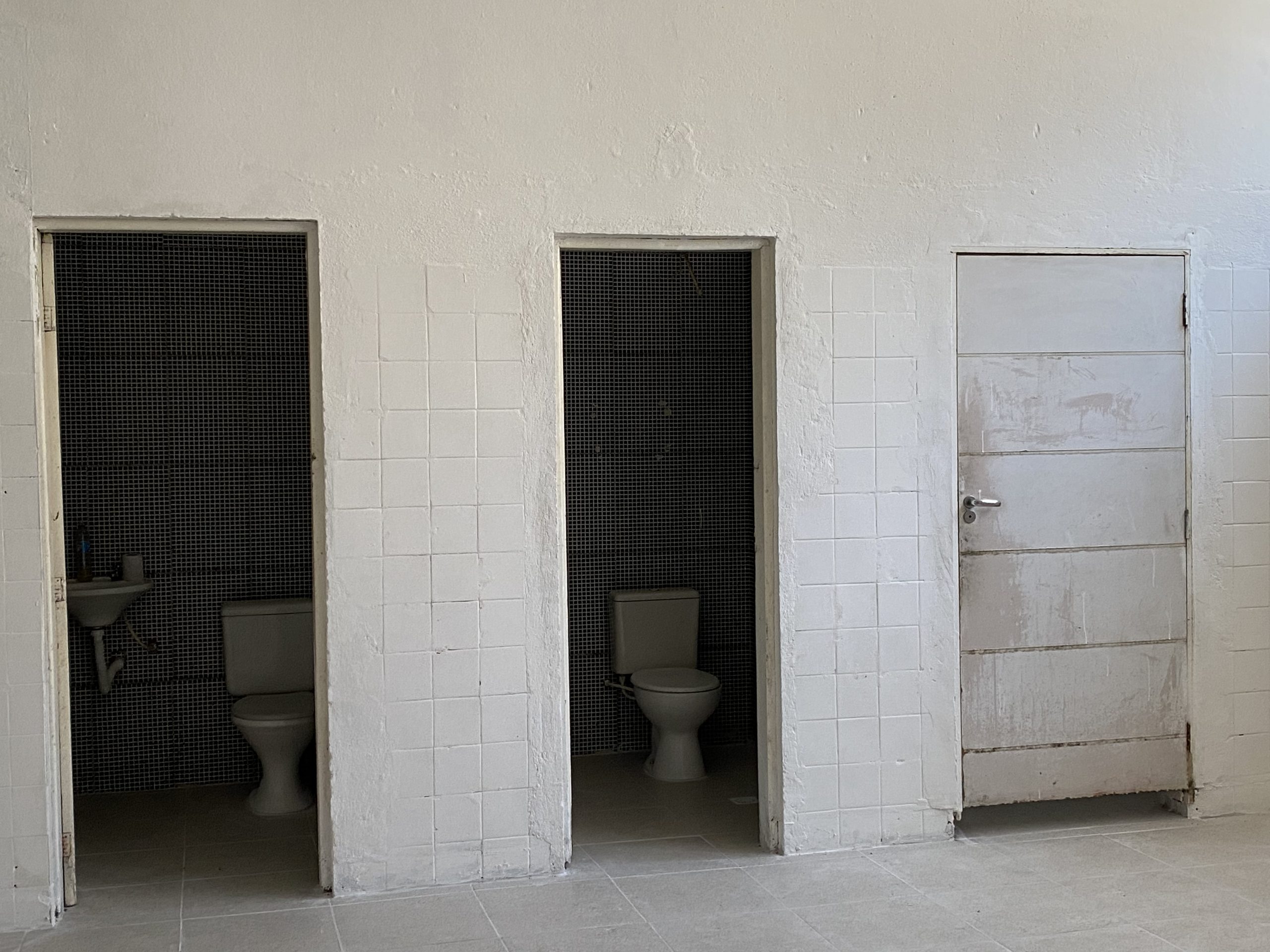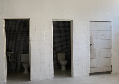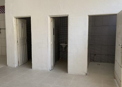 • 2 banheiros masculino e feminino com revestimento cerâmico e 1 reversível