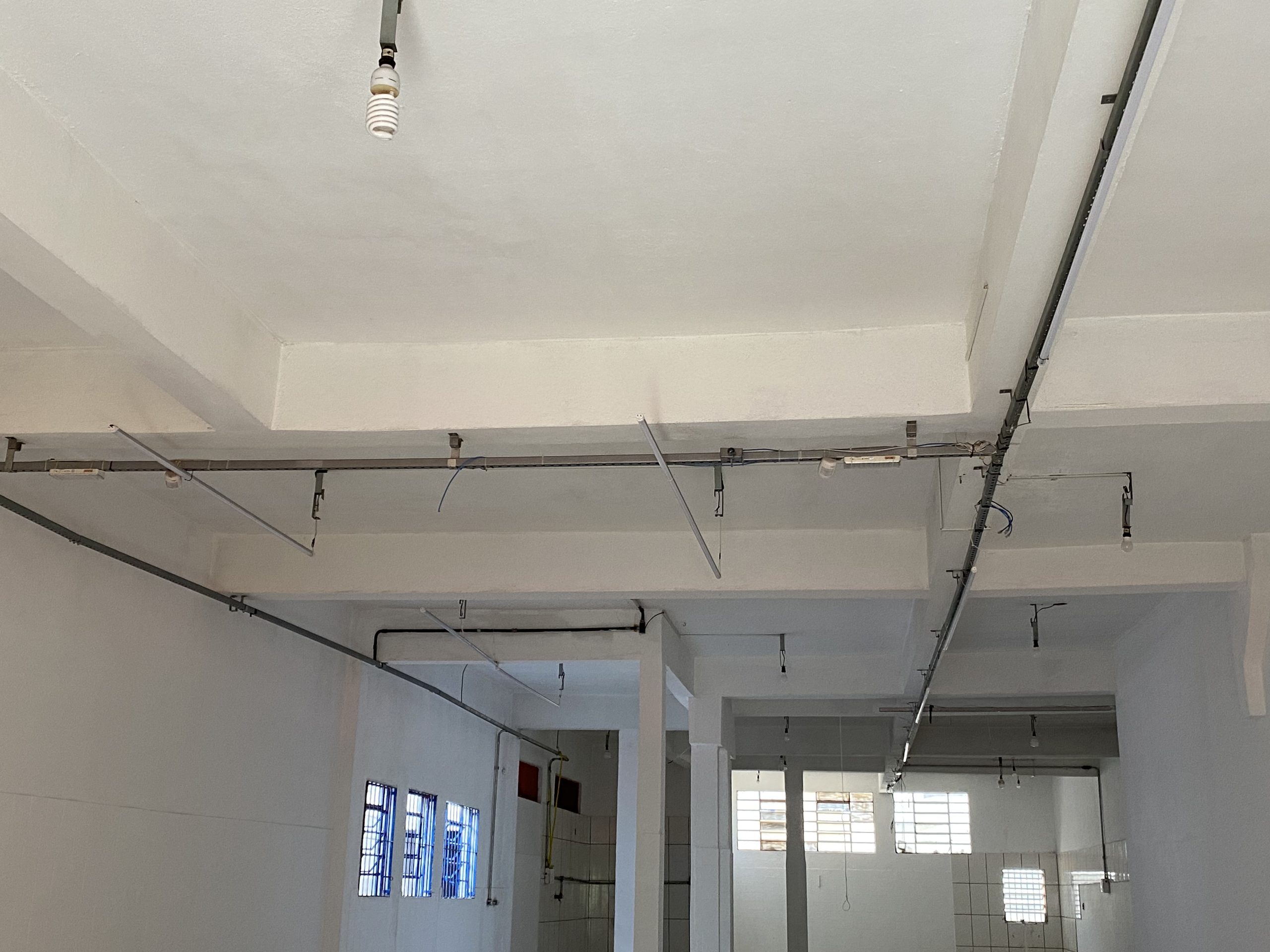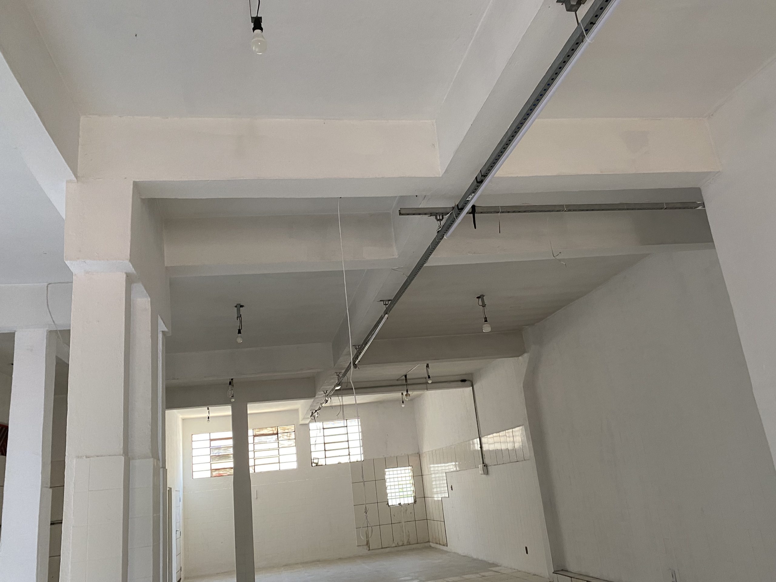 • Paredes com revestimento cerâmico, parte com iluminação fluorescente.